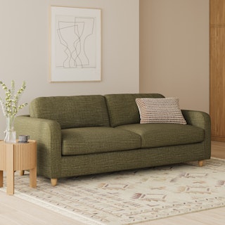 With its low-profile curvaceous shape and ridiculously cushy cushions, the Vati is such a good-looking sofa you’d be inclined to think it's just a pretty face. Well friend, you'd be wrong. With high-resiliency foam seats, oak legs, and rubber-webbing suspension, the Vati is quietly, curvaceously serving up excellent quality and supreme sinkability. Go on, show off — the Vati can back it up.