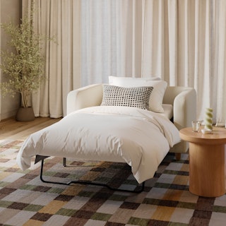 A lounge chair that can (figuratively) swallow you up. With its low-profile curvaceous shape and ridiculously cushy cushions, the Vati is such a good-looking lounge chair you’d hardly know it’s actually a sleeper in disguise. Remove the cushions, pull out the memory foam mattress, and voila! Great for when you want a little extra recline or need to house overnight guests. The best part? It’s so inconspicuous, only you get to decide who’s in the know.