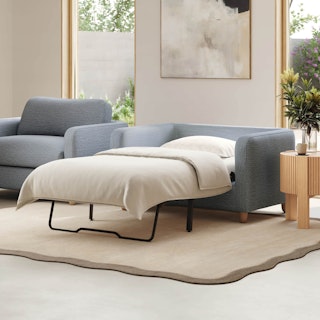 A lounge chair that can (figuratively) swallow you up. With its low-profile curvaceous shape and ridiculously cushy cushions, the Vati is such a good-looking lounge chair you’d hardly know it’s actually a sleeper in disguise. Remove the cushions, pull out the memory foam mattress, and voila! Great for when you want a little extra recline or need to house overnight guests. The best part? It’s so inconspicuous, only you get to decide who’s in the know.