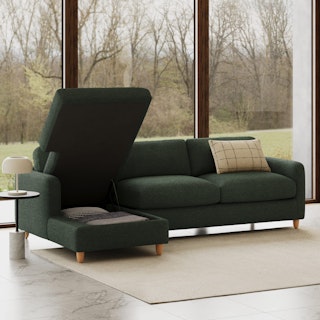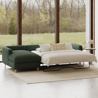 Vati 114" Left Storage Sleeper Sectional - Green Wool Bouclé