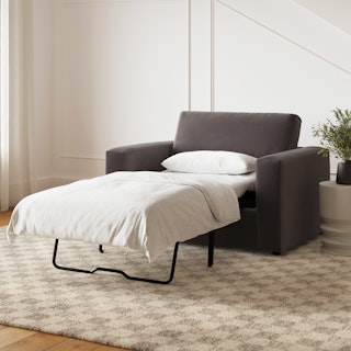 “No drinks allowed on the Sofa,” we were always told. Well, look at us now, Mom. We have the Riley. Upholstered in our durable Hale fabric, you can enjoy your morning cuppa or breakfast in bed peacefully — still watch the sheets, mind you. Whether you want the ultimate overnight sleeper and melt into its memory foam mattress, or lean against its sturdy corner-blocked frame when it's time to sit up and make your point, Riley is gentle but firm.