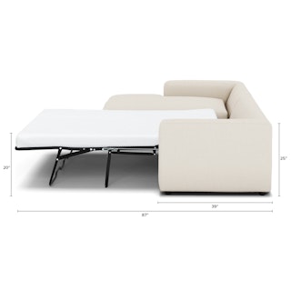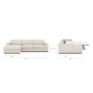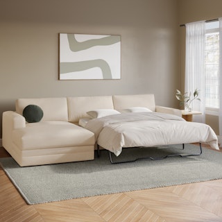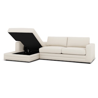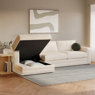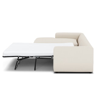 Upholstered in our ever-so-soft Bouclé fabric, you can enjoy your morning cuppa in peace. With its fold-out memory foam mattress, and a treasure chest hidden below its spacious chaise seat, Riley is ready for just about any situation. Whether you want the ultimate lounger to melt into its plump poly-fill cushions, or lean against its sturdy corner-blocked frame when it's time to sit up and make your point, Riley is gentle but firm.