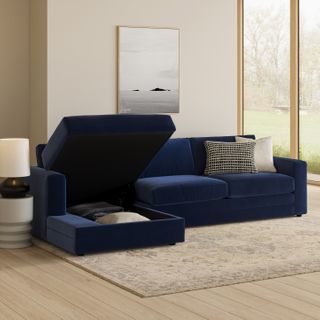 Riley 118" Velvet Left Storage Sleeper Sectional - Hale Ink