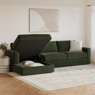 Riley 118" Velvet Left Storage Sleeper Sectional - Hale Fir Green