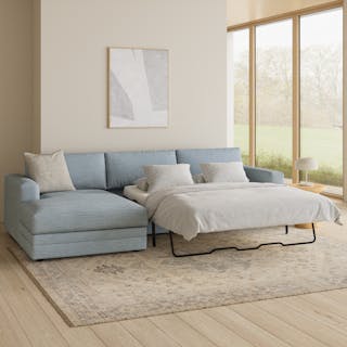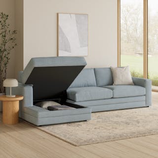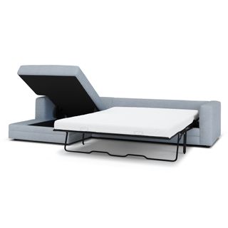 “No drinks allowed on the Sofa” — we were always told. Well look at us now Mom, we have the Riley. With its fold-out memory foam mattress, and a treasure chest hidden below its spacious chaise seat, Riley is ready for just about any situation. Whether you want the ultimate lounger to melt into its plump poly-fill cushions, or lean against its sturdy corner-blocked frame when it's time to sit up and make your point, Riley is gentle but firm.