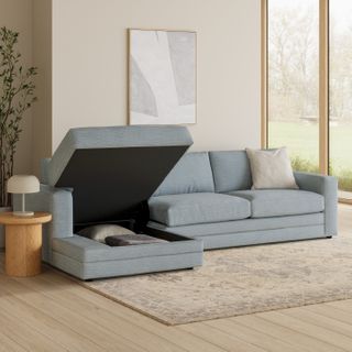 Riley 118" Left Storage Sleeper Sectional - Silver Light Blue
