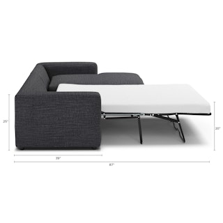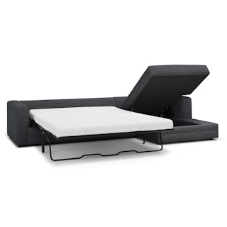 “No drinks allowed on the Sofa” — we were always told. Well look at us now Mom, we have the Riley. With its fold-out memory foam mattress, and a treasure chest hidden below its spacious chaise seat, Riley is ready for just about any situation. Whether you want the ultimate lounger to melt into its plump poly-fill cushions, or lean against its sturdy corner-blocked frame when it's time to sit up and make your point, Riley is gentle but firm.