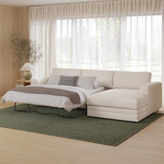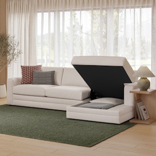 “No drinks allowed on the Sofa” — we were always told. Well look at us now Mom, we have the Riley. With its fold-out memory foam mattress, and a treasure chest hidden below its spacious chaise seat, Riley is ready for just about any situation. Whether you want the ultimate lounger to melt into its plump poly-fill cushions, or lean against its sturdy corner-blocked frame when it's time to sit up and make your point, Riley is gentle but firm.