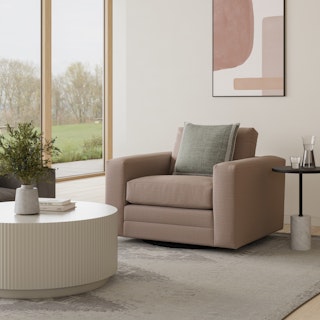 “No drinks allowed on the Sofa”—we were always told. Well look at us now Mom, we have the Riley. Upholstered in our durable Napa fabric, you can enjoy your morning cuppa in peace. Whether you want the ultimate lounger to melt into its plump poly-fill cushions or the perfect swivel chair to practice your Bond villain turn, Riley is gentle but firm.