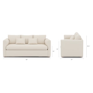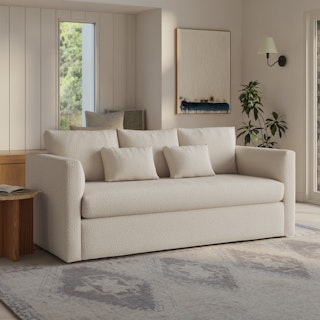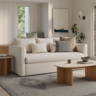 How do you want to feel on your sofa? Elevated. Comfortable. Calm. Collected. With clean details and pleasing design heft, the Marina couch manages to feel at once laid back and put together. Generously padded seats and armrests encourage long periods of meandering; bolster pillows make perfect props for a surprise nap. Upholstered with our super soft Bouclé fabric, the Marina is low-absorption with a signature bouncy texture. Throw on your favorite 90s romcom and bask in a little nostalgia.