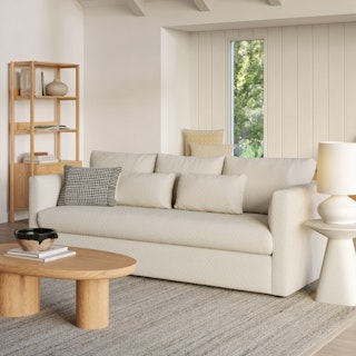 How do you want to feel on your sofa? Elevated. Comfortable. Calm. Collected. With clean details and pleasing design heft, the Marina couch manages to feel at once laid back and put together. Generously padded seats and armrests encourage long periods of meandering; bolster pillows make perfect props for a surprise nap. Upholstered with our super soft Bouclé fabric, the Marina is low-absorption with a signature bouncy texture. Throw on your favorite 90s romcom and bask in a little nostalgia.
