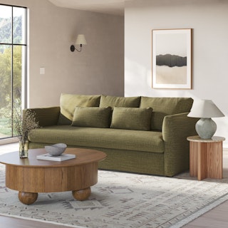 How do you want to feel on your sofa? Elevated. Comfortable. Calm. Collected. With clean details and pleasing design heft, the Marina couch manages to feel at once laid back and put together. Generously padded seats and armrests encourage long periods of meandering; bolster pillows make perfect props for a surprise nap. Upholstered with Napa fabric, the Marina is treated with a stain-repellant C0 finish, offering exceptional protection to your sofa while being free of gross forever-chemicals. Throw on your favorite 90s romcom and bask in a little nostalgia.