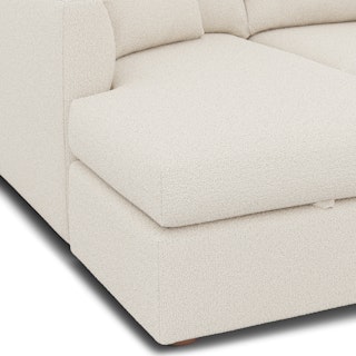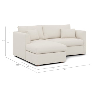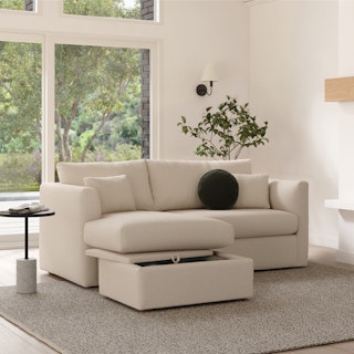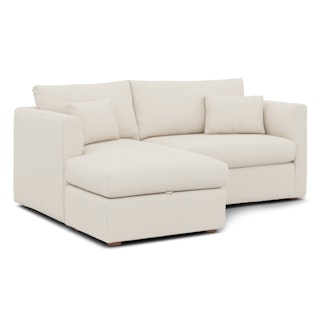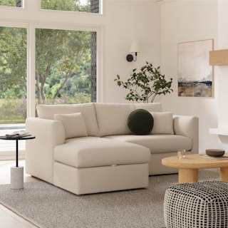 How do you want your sofa to feel? Elevated, comfortable, calm, and collected. With clean details and pleasing design heft, the Marina reversible storage sectional manages to feel at once laid-back and put together. Generously padded seats and armrests encourage long periods of meandering, while the hidden storage below the chaise can hide all kinds of goodies. Upholstered with our super soft Bouclé fabric, the Marina is low-absorption with a signature bouncy texture. Throw on your favorite 90s romcom and bask in a little nostalgia.