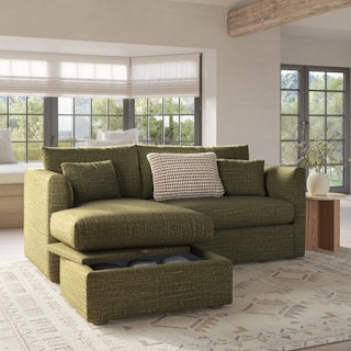 How do you want your sofa to feel? Elevated, comfortable, calm, and collected. With clean details and pleasing design heft, the Marina reversible storage sectional manages to feel at once laid-back and put together. Generously padded seats and armrests encourage long periods of meandering, while the hidden storage below the chaise can hide all kinds of goodies. Upholstered with Napa fabric, the Marina is treated with a stain-repellant C0 finish, offering exceptional protection to your sofa while being free of gross forever-chemicals. Throw on your favorite 90s romcom and bask in a little nostalgia.