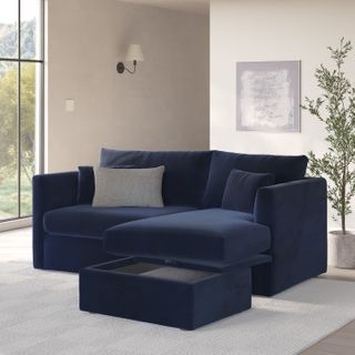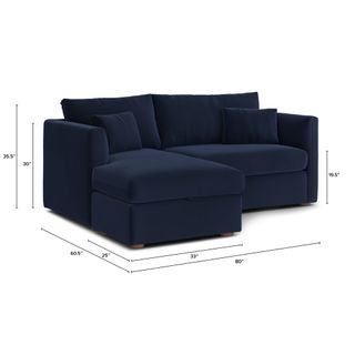 How do you want your sofa to feel? Elevated, comfortable, calm, and collected. With clean details and pleasing design heft, the Marina reversible storage sectional manages to feel at once laid-back and put together. Generously padded seats and armrests encourage long periods of meandering, while the hidden storage below the chaise can hide all kinds of goodies. Upholstered with Hale velvet, the Marina is fade-resistant, easy to clean, and anti-crush. Throw on your favorite 90s romcom and bask in a little nostalgia.