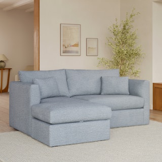 How do you want your sofa to feel? Elevated, comfortable, calm, and collected. With clean details and pleasing design heft, the Marina reversible storage sectional manages to feel at once laid-back and put together. Generously padded seats and armrests encourage long periods of meandering, while the hidden storage below the chaise can hide all kinds of goodies. Upholstered with LifeGuard™ fabric, the Marina has stain-repellant fibres woven in at the fabric level, for an inherently stain resistant and easy to care for product. Throw on your favorite 90s romcom and bask in a little nostalgia.