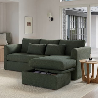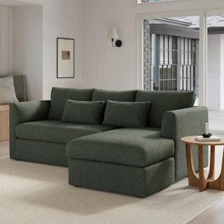 How do you want your sofa to feel? Elevated, comfortable, calm, and collected. With clean details and pleasing design heft, the Marina reversible storage sectional manages to feel at once laid-back and put together. Generously padded seats and armrests encourage long periods of meandering, while the hidden storage below the chaise can hide all kinds of goodies. Upholstered with our super soft Bouclé fabric, the Marina is low-absorption with a signature bouncy texture. Throw on your favorite 90s romcom and bask in a little nostalgia.