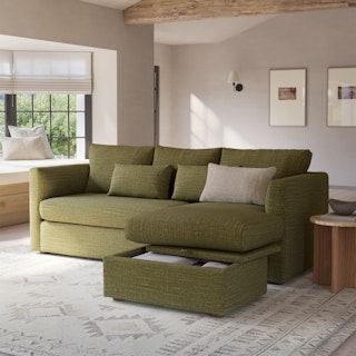 How do you want your sofa to feel? Elevated, comfortable, calm, and collected. With clean details and pleasing design heft, the Marina reversible storage sectional manages to feel at once laid-back and put together. Generously padded seats and armrests encourage long periods of meandering, while the hidden storage below the chaise can hide all kinds of goodies. Upholstered with Napa fabric, the Marina is treated with a stain-repellant C0 finish, offering exceptional protection to your sofa while being free of gross forever-chemicals. Throw on your favorite 90s romcom and bask in a little nostalgia.