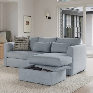 How do you want your sofa to feel? Elevated, comfortable, calm, and collected. With clean details and pleasing design heft, the Marina reversible storage sectional manages to feel at once laid-back and put together. Generously padded seats and armrests encourage long periods of meandering, while the hidden storage below the chaise can hide all kinds of goodies. Upholstered with LifeGuard™ fabric, the Marina has stain-repellant fibres woven in at the fabric level, for an inherently stain resistant and easy to care for product. Throw on your favorite 90s romcom and bask in a little nostalgia.