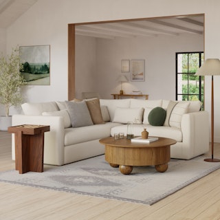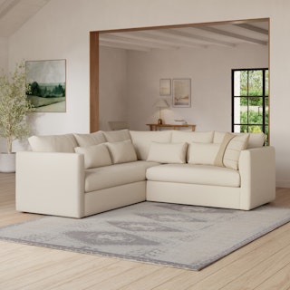 How do you want to feel on your sofa? Elevated. Comfortable. Calm. Collected. With clean details and pleasing design heft, the Marina corner sectional manages to feel at once laid back and put together. Generously padded seats and armrests encourage long periods of meandering; bolster pillows make perfect props for a surprise nap. Upholstered with our super soft Bouclé fabric, the Marina is low-absorption with a signature bouncy texture. Throw on your favorite 90s romcom and bask in a little nostalgia.