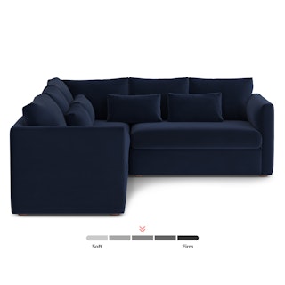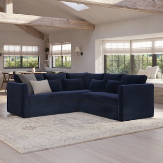 How do you want to feel on your sofa? Elevated. Comfortable. Calm. Collected. With clean details and pleasing design heft, the Marina corner sectional manages to feel at once laid back and put together. Generously padded seats and armrests encourage long periods of meandering; bolster pillows make perfect props for a surprise nap. Upholstered with Hale velvet, the Marina is fade-resistant, easy to clean, and anti-crush. Throw on your favorite 90s romcom and bask in a little nostalgia.