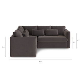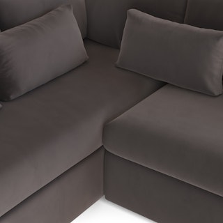 How do you want to feel on your sofa? Elevated. Comfortable. Calm. Collected. With clean details and pleasing design heft, the Marina corner sectional manages to feel at once laid back and put together. Generously padded seats and armrests encourage long periods of meandering; bolster pillows make perfect props for a surprise nap. Upholstered with Hale velvet, the Marina is fade-resistant, easy to clean, and anti-crush. Throw on your favorite 90s romcom and bask in a little nostalgia.