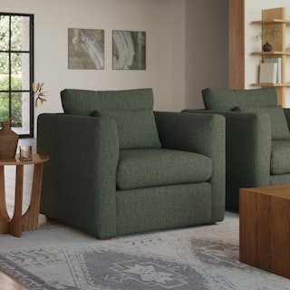 How do you want to feel? Elevated. Comfortable. Calm. Collected. With clean details and pleasing design heft, the Marina lounge chair manages to feel at once laid back and put together. Generously padded seats and armrests encourage long periods of meandering; bolster pillows make perfect props for a surprise nap. Upholstered with our super soft Bouclé fabric, the Marina is low-absorption with a signature bouncy texture. Throw on your favorite 90s romcom and bask in a little nostalgia.