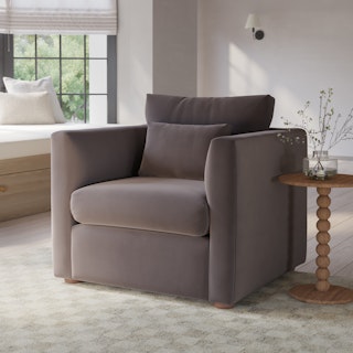 How do you want to feel? Elevated. Comfortable. Calm. Collected. With clean details and pleasing design heft, the Marina lounge chair manages to feel at once laid back and put together. Generously padded seats and armrests encourage long periods of meandering; bolster pillows make perfect props for a surprise nap. Upholstered with Hale velvet, the Marina is fade-resistant, easy to clean, and anti-crush. Throw on your favorite 90s romcom and bask in a little nostalgia.