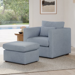 How do you want to feel? Elevated. Comfortable. Calm. Collected. With clean details and pleasing design heft, the Marina ottoman manages to feel at once laid back and put together. Upholstered with LifeGuard™ fabric, the Marina has stain-repellant fibres woven in at the fabric level, for an inherently stain resistant and easy to care for product. Throw on your favorite 90s romcom, put your feet up, and bask in a little nostalgia.