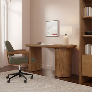 Natural born leader. That's right, we're talking about you. But, also, this desk. Put the Baarlo against a wall or leave it out in the open to show off its soft curves and natural oak glory, it knows how to command a room placed either way. Plus, its spacious cabinet for storage and discreet cord management keep the chaos of work at bay. Even though you're super organized, naturally.