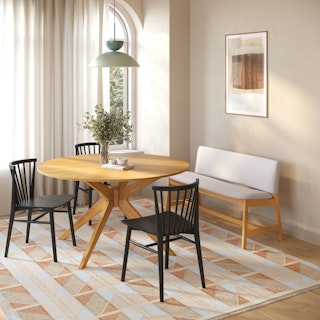 Take a seat on the Nosh for some grade-A 'noshing,' as in 'sitting comfy' — that's right, we're co-opting the verb. Designed with tapered legs, soft textured upholstery, and solid wood construction, this bench is MCM-inspired design at its best.