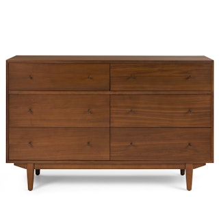 An apartment-friendly dresser, the Cooper has a small footprint but doesn't lack storage. Six spacious soft-close drawers provide ample space for anything you need to stash away. Sleep well, knowing you'll wake up to Cooper's subtle, minimal design in the morning.