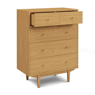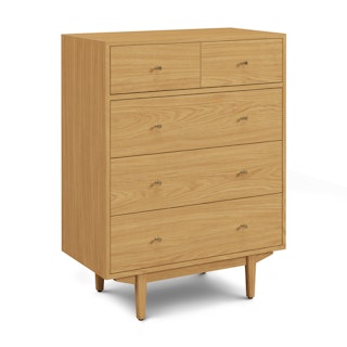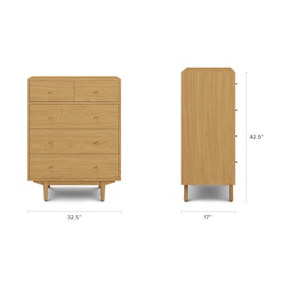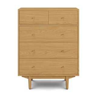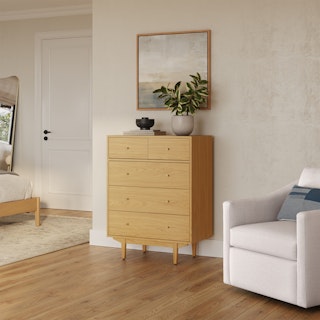 An apartment-friendly chest, the Cooper has a small footprint but doesn't lack storage. Five spacious soft-close drawers provide ample space for anything you need to stash away. Sleep well, knowing you'll wake up to Cooper's subtle, minimal design in the morning.