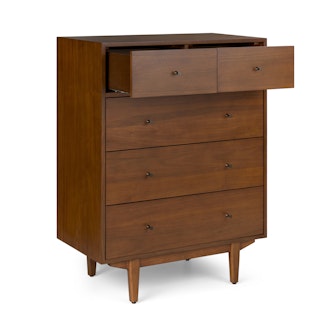 An apartment-friendly chest, the Cooper has a small footprint but doesn't lack storage. Five spacious soft-close drawers provide ample space for anything you need to stash away. Sleep well, knowing you'll wake up to Cooper's subtle, minimal design in the morning.