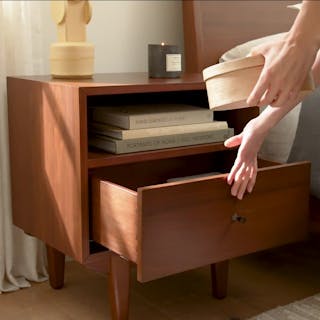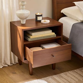 An apartment-friendly nightstand, the Cooper has a small footprint but still offers ample storage. A spacious soft-close drawer with an open shelf provides ample storage, while its cable management cut-out keeps those pesky wires hidden. Sleep well, knowing you'll wake up to Cooper's subtle, minimal design in the morning.