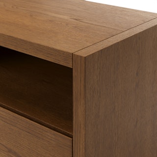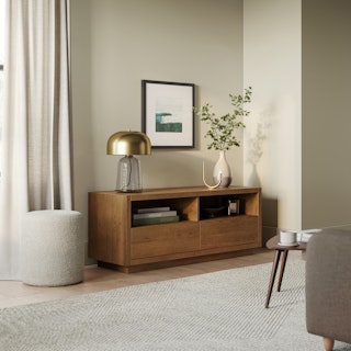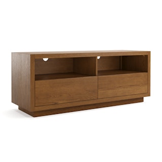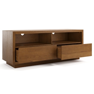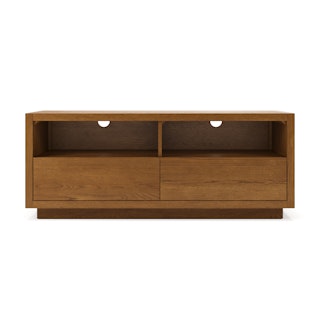 The strong, silent type. The Leif Media Unit embodies the classic tropes we associate with Scandinavian good looks: slender, blond, sturdy, impeccable posture. But it's not all good looks and clean lines; it's also soft-spoken and sensitive to your (storage) needs. Featuring two discreet soft-close drawers and two open cubbies topped with cable management cut-outs, it boasts some serious storage capacity. Set atop a subtle plinth base, the Leif Media Unit is the perfect way to keep an open, airy vibe without sacrificing storage space.