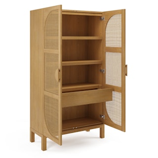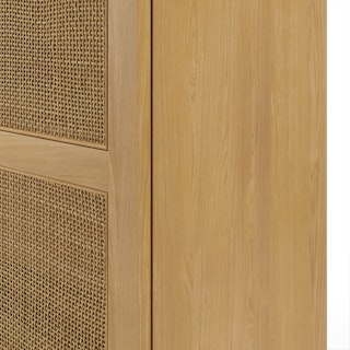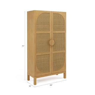 Easy, breezy, beautiful. The Dania cabinet smacks of summer all year round: box cane panels on the doors lend visual lightness to a large, hardworking storage piece. Open the doors to find a concealed drawer and two adjustable shelves. With statement handles and solid wood legs, and doors, the Dania manages to have both a fanciful design and smart utility.