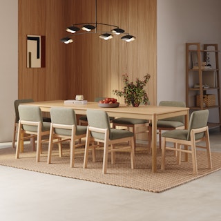 From intimate candlelit dinners to cozy late-night drinks that stretch well past bedtime, the Blissful Nook Bundle captures the light and airy essence of Scandi design. Made from solid and veneered wood, its sharp lines are softened by curved edges, and the padded upholstered seat encourages long evenings filled with snacks, board games, and good company. If only making dinner every night could be this simple and enjoyable.
