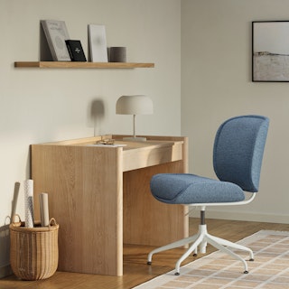 Scandi meets Mid-century in the cutest way. Rya's wide seat and soft bouclé fabric paired with Kacey's solid walnut frame and floating desktop design support you as you knock those KPIs out of the park. Kacey's modular design lets you mount the desk drawer on either side of the work station, and Rya's adjustable frame let's you lean back and get some perspective on that touchy email you're drafting.