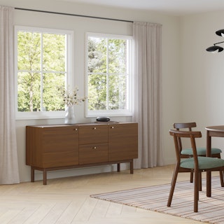Embodying all the light and airy qualities of the Scandi design style, the Heidi sideboard is purposely unembellished to let its thoughtful details shine: solid-wood legs and apron, with subtle radiused corners, highlight its beautiful wood grain. Soft-close drawers and doors, adjustable shelving, and cable management are all there to accommodate your storage needs. As the Swedes would say... "Hurra!"