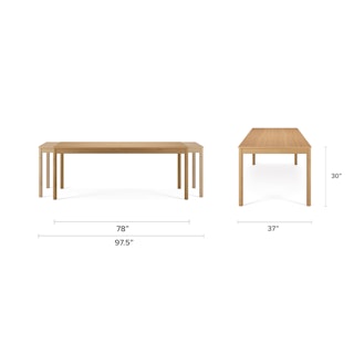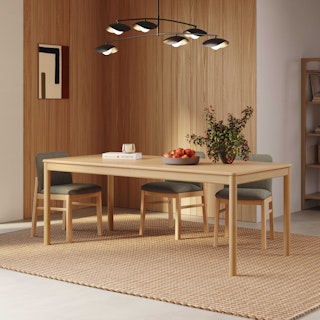 Keeping supper simple since mid-2025. The Heidi table is purposely unembellished to let its thoughtful details shine: a lip of solid-wood edging highlights the beautiful wood grain and visually separates the top and base of the table. A drop-in leaf emerges to accommodate unexpected guests, or to make more room for the fourth-grade poster art project. Next up on our quest to simplify… meal planning.