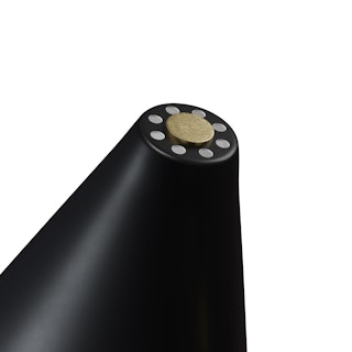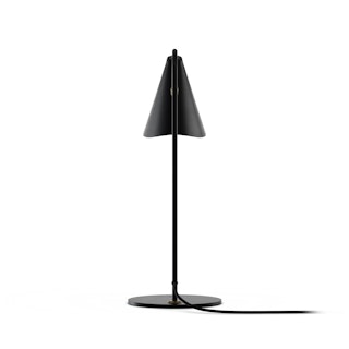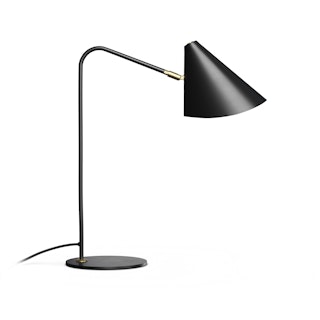 With its cone-shaped shade and sharply curved stand, Kaye draws upon the elegant characteristics of mid-century design with a modern twist. It's easily adjustable shade directs light exactly where you want it, perfect for a bedside or desk lamp. Its sleek finish combines matte black with brass accents for a classic piece of home decor.