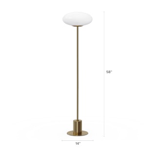 Iconic, mid-century design at its finest, Menken features an opaque saucer-shaped shade atop a tall, slender brass-plated frame. Emitting a warm ambient glow, Menken is the subtle mood lighting we all crave.