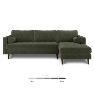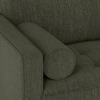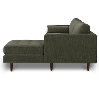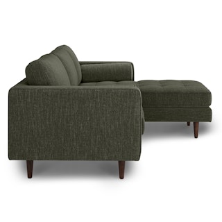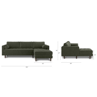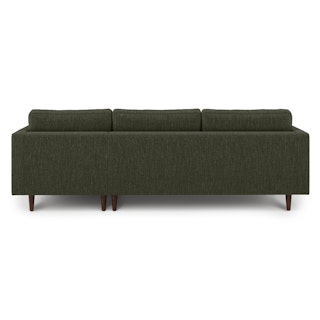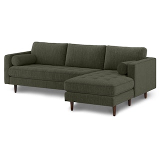 Oh, you like green space? This green sectional sofa is ready to snuggle. The Sven fir green sectional is made from a corner-blocked wooden frame and dapper medium-weave tweed fabric. Loose back cushions and bolsters make the Sven easy to clean, and great for arranging the perfect movie-watching position.