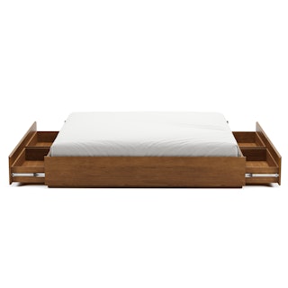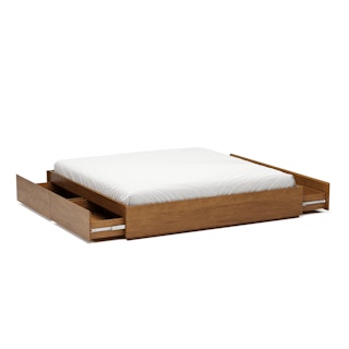 The strong, silent type. The Leif platform storage bed embodies the classic tropes we associate with Scandinavian good looks: tall, blond, sturdy, impeccable posture. But it's not all good looks and clean lines; it's also soft-spoken and sensitive to your (storage) needs. Featuring four soft-close drawers — two on either side, the Leif boasts some serious storage capacity. Perfect for that extra set of sheets, or two or three...