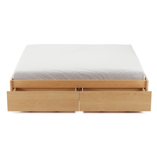 The strong, silent type. The Leif platform storage bed embodies the classic tropes we associate with Scandinavian good looks: tall, blond, sturdy, impeccable posture. But it's not all good looks and clean lines; it's also soft-spoken and sensitive to your (storage) needs. Featuring four soft-close drawers — two on either side, the Leif boasts some serious storage capacity. Perfect for that extra set of sheets, or two or three...