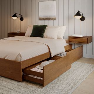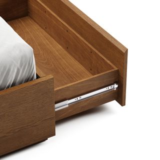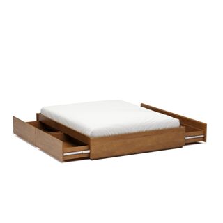 The strong, silent type. The Leif platform storage bed embodies the classic tropes we associate with Scandinavian good looks: tall, blond, sturdy, impeccable posture. But it's not all good looks and clean lines; it's also soft-spoken and sensitive to your (storage) needs. Featuring four soft-close drawers — two on either side, the Leif boasts some serious storage capacity. Perfect for that extra set of sheets, or two or three...