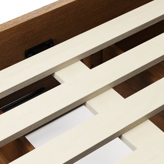 - Made from a mix of veneered and solid wood: veneer is highly durable, whereas solid wood is used to build beautiful details and support weight