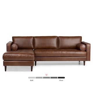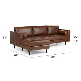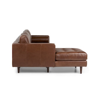 A classic for a reason. Upholstered in full-aniline leather, the sectional plays the same notes as our Sven Sofa, but with more space to stretch out. Over time, the leather will develop a beautiful vintage patina. Natural color variations, wrinkles and creases are part of the unique characteristics of full-aniline leather. It will develop a relaxed vintage look with regular use.