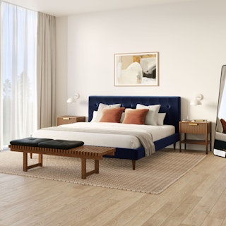 Sven King Tufted Velvet Bed - Plush Cascadia Blue
